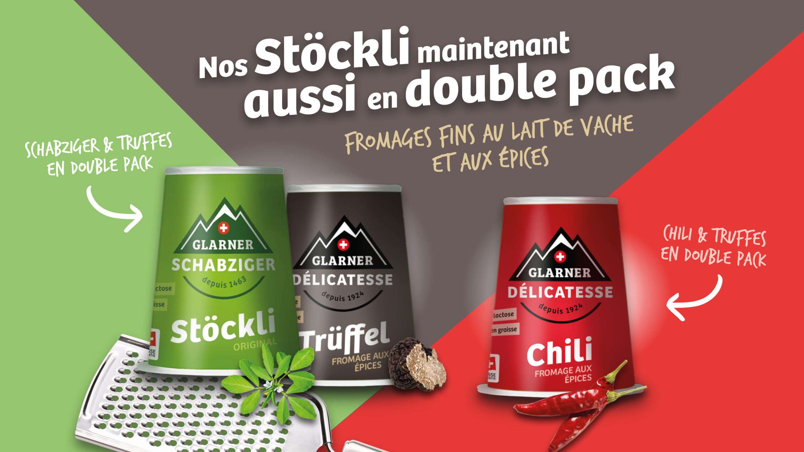 Glarner Délicatesse est la deuxième ligne de produits de Geska. Découvre les délicieux produits – sans schabziger mais à base du meilleur lait de montagne glaronnais.
