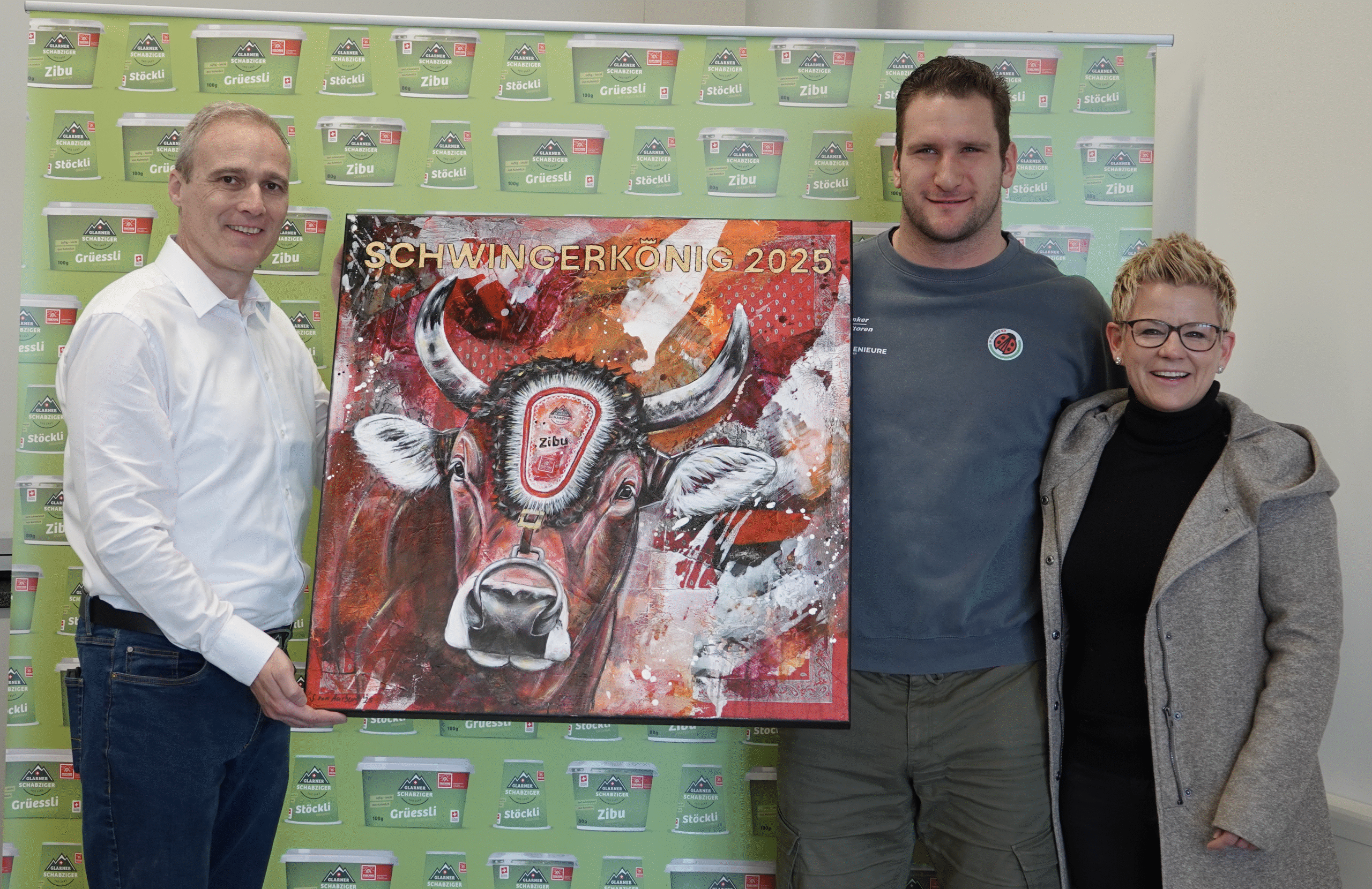 In unseren Räumlichkeiten durften wir einen ganz besonderen Augenblick erleben: Schwingerkönig Armon Orlik nahm das Porträt seines Siegstiers Zibu entgegen – nicht als lebendigen Muni, sondern als bleibendes Kunstwerk. Gemeinsam mit der Künstlerin Susanne von Aarburg aus Kaltbrunn überreichten wir ihm das Bild in einem kleinen, familiären Rahmen. Ein Moment voller Stolz, Herzlichkeit und echter Glarner Bodenständigkeit.